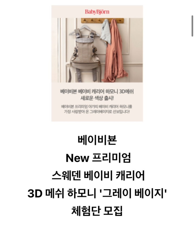 베이비뵨 New 프리미엄 스웨덴 베이비 캐리어 3D 메쉬 하모니 '그레이 베이지' 체험단 모집 ●...