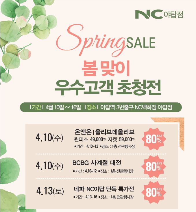 4월 10일 NC야탑점 새봄! 따뜻한특가!