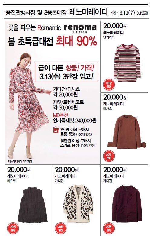 3월 13일 레노마레이디 최대 90%