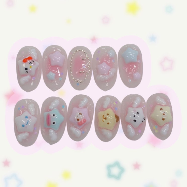 수제 네일 팁 판매 네일 새김 귀여운 별 날개 네일 디자인