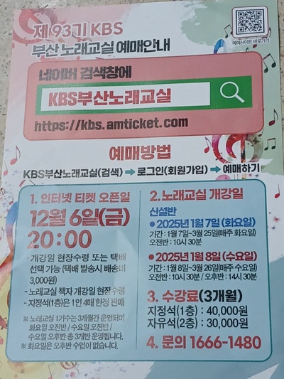 벌써 3개월이 지나 93기 KBS부산 노래교실 예매일이 돌아왔네요~ 이번 부산노래교실예매는 기존에 해왔...