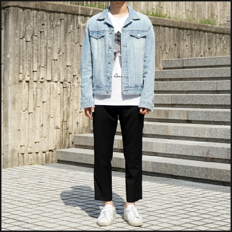 남자 청자켓 코디 흰티 슬랙스와 매치