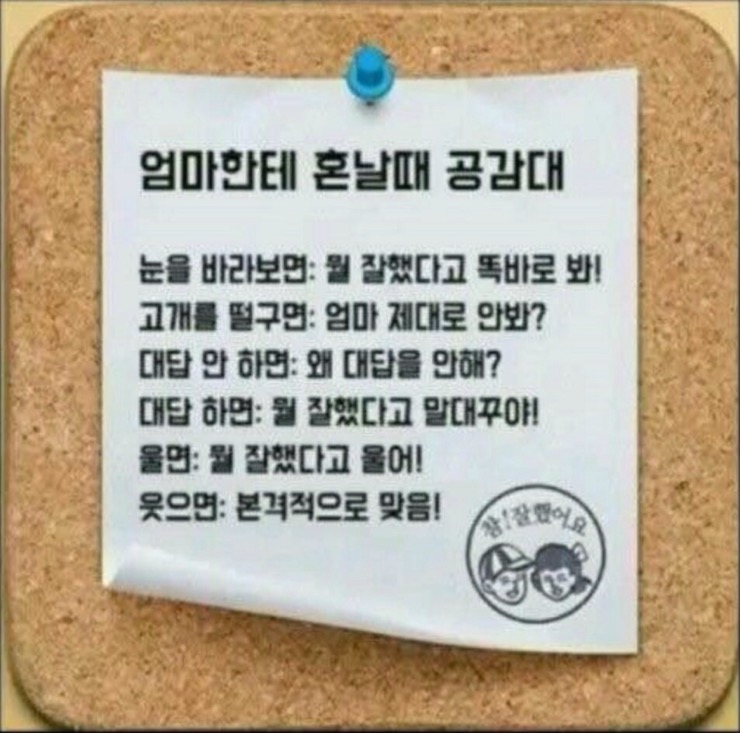 어떤 분께서 올린 재밌는 사진이 있어서 공유해 봅니다. 아마 엄마들이라면 혹은 현재 자식의 입장...