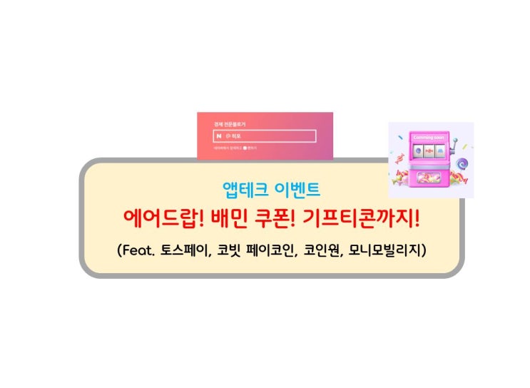 [앱테크 이벤트] 커피, 에어드랍, 배민쿠폰! (Feat. 토스페이, 코빗 페이코인, 코인원, 모니모빌리지)