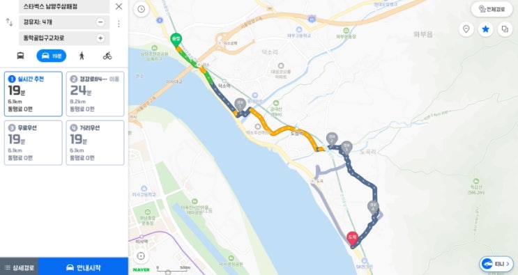 출근 시간 남양주에서 팔당으로 가는 지름길