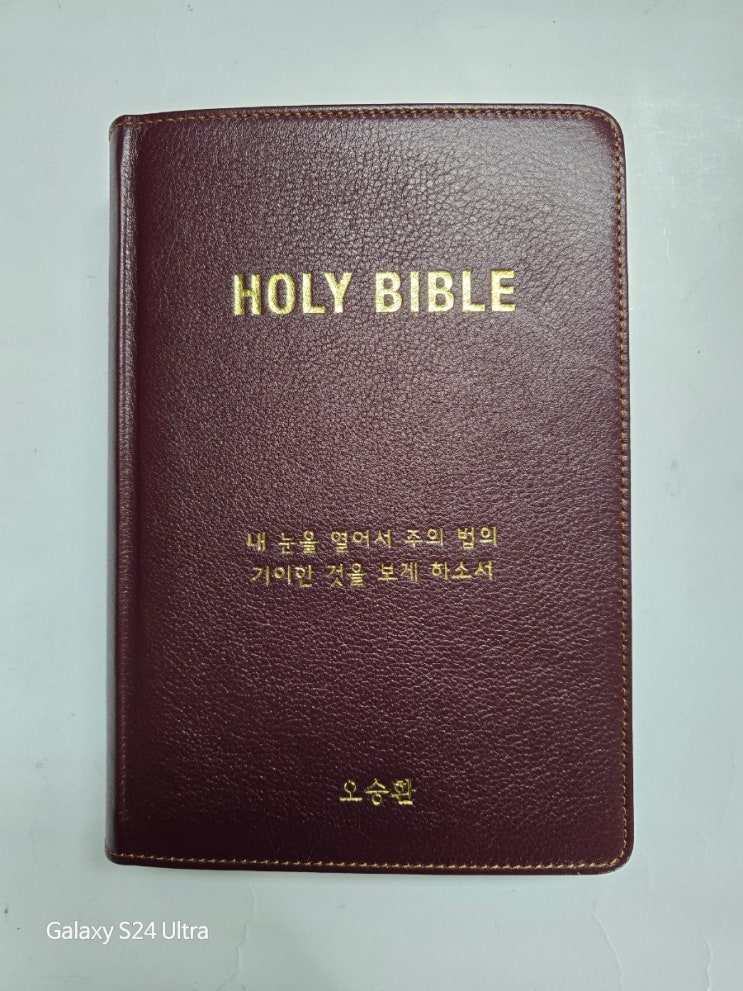 전남 여수시 주세움교회 주현상님 성경필사 노트/최고급 슈렁컨 천연자연 오플무늬 버건디 소가죽으로 제본...