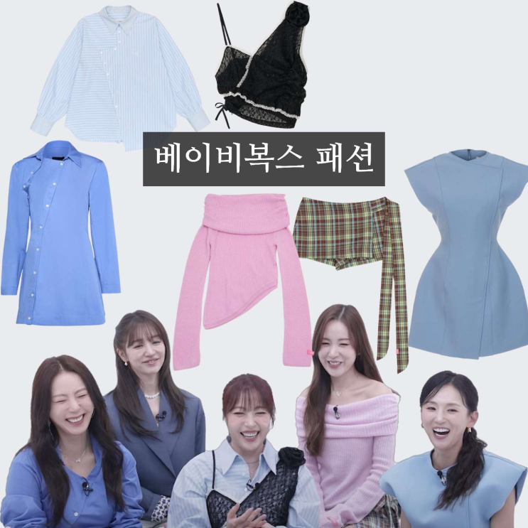 베이비복스 간미연 오프숄더 니트 이희진 원피스 김이지 셔츠 심은진 옷 착장 정보(유튜브 본인등판)