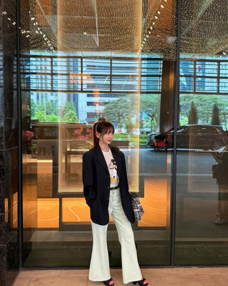 강예원, 미키 티셔츠와 오버사이즈 재킷의 찰떡궁합