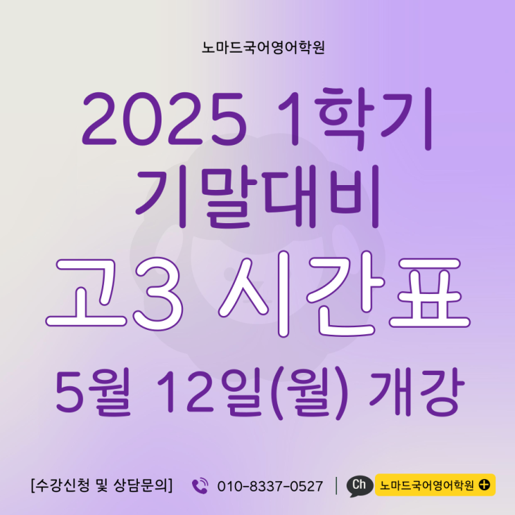 안녕하세요. 노마드국어영어학원입니다. 2025 고3 시간표 안내해드립니다. * 위 시간표는 학원 사정에 따라...