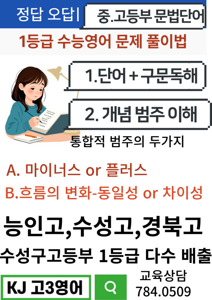우리 동네 범물동 영어학원-중. 고등부 수능 내신 영어 KJ 고3 영어에 대해 이야기해 보겠습니다. 많은 ...