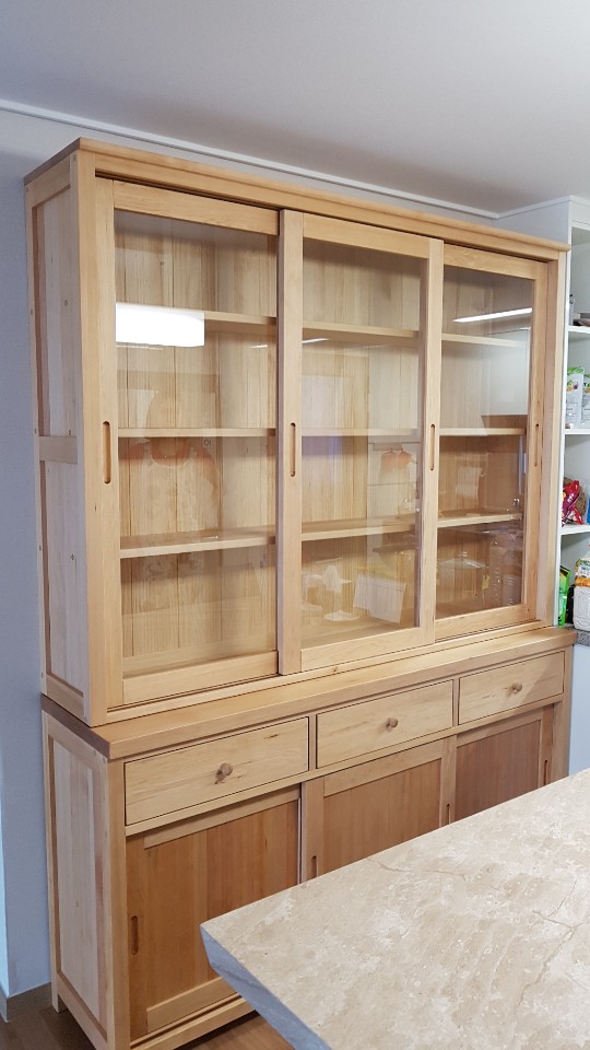 원목그릇장 제품으로 화이트그릇장이 아닌 원목색상으로 제작된 제품입니다. 그릇장, 장식장, 수납장등 다...