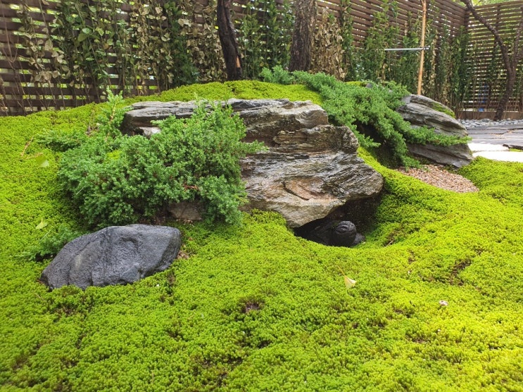 이태원 단독주택 정원 조경 공사 -이끼 정원, 조형소나무 식재