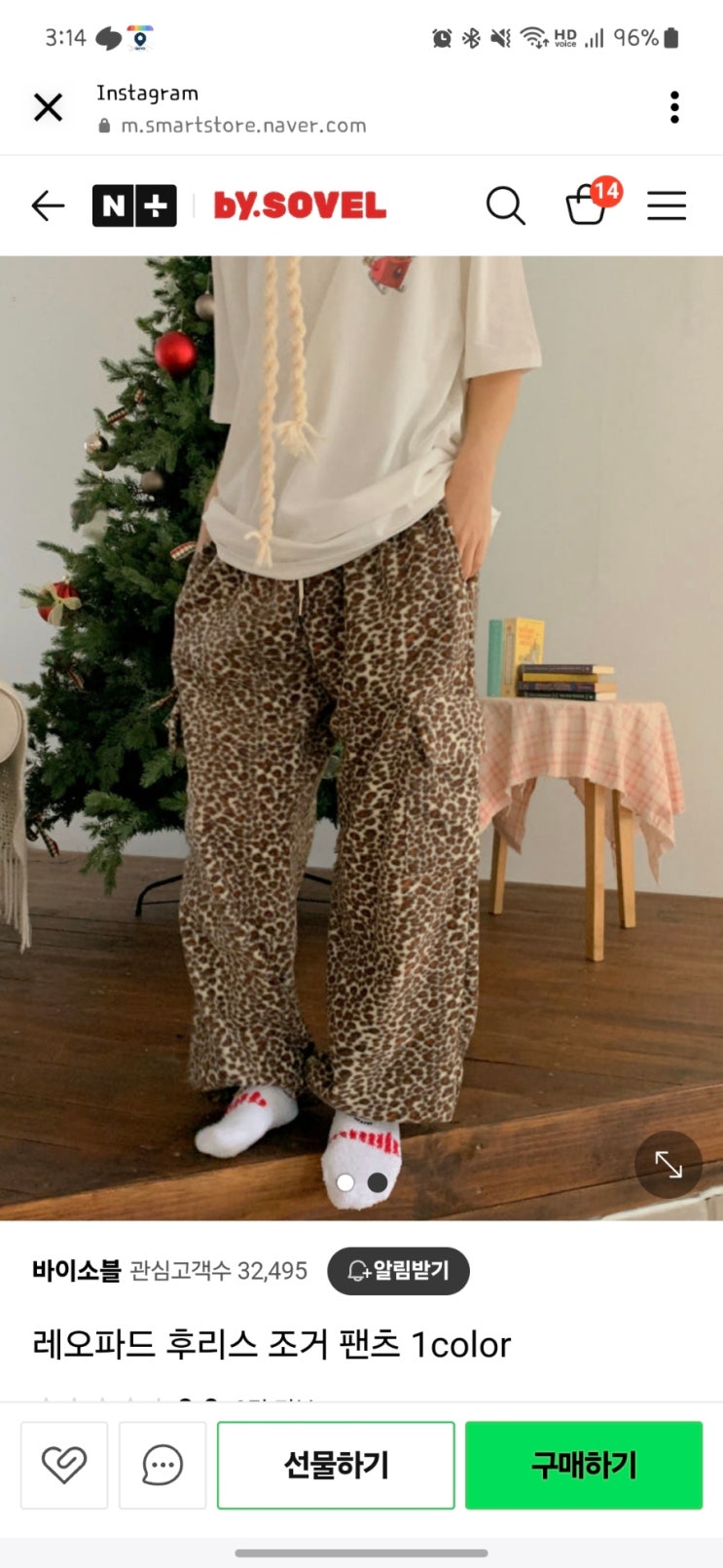 윤윤데씨 브이로그 보다가 호피무늬 바지 갖고싶어서 오빠한테 이거 사고싶다했더니... 이걸... 밖에서 입...
