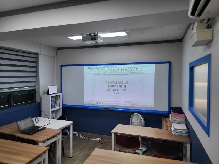 대치동 학원 빔프로젝터 화이트보드 노트북 연결 투사 설치