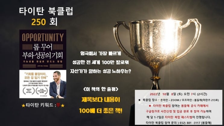 안녕하세요 긍정마녀입니다 오늘은 타이탄북클럽 송도나비 독서모임 후기 포스팅을 올리려 합니다 저는 건...