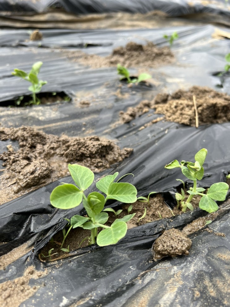 #고구마심기 #완두콩 키우기 #주말농장 #텃밭작물 #텃밭가꾸기 오후에 비온다는 예보다. 미리주문한 고구마...
