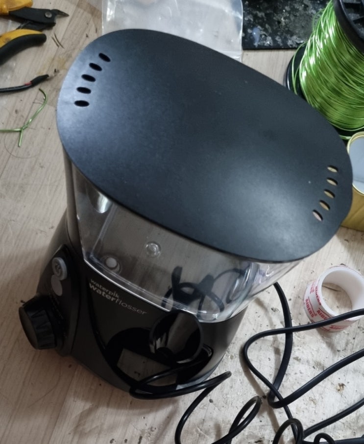 워터픽입니다. 전원이 들어오지않아 밑겨 주셨습니다. 분해하려면 나사들을 다 푼뒤 고무 바킹 부분을 살살...