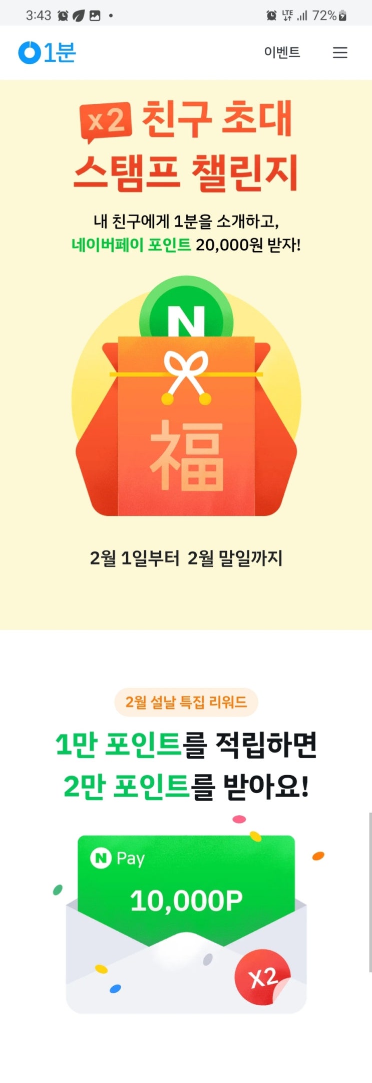 1분 친구초대 스탬프 챌린지 이벤트 초대 링크