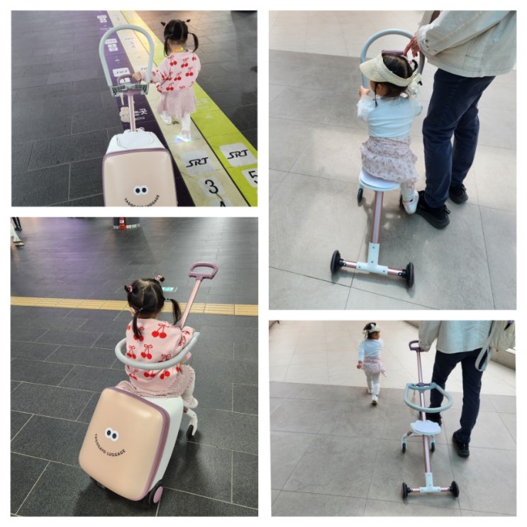 아이와 혼자 기차, 비행기 타러 갈 때마다 타고 가요 캐리어 구매할까 말까 늘 망설였는데... 진작에 살껄 ...