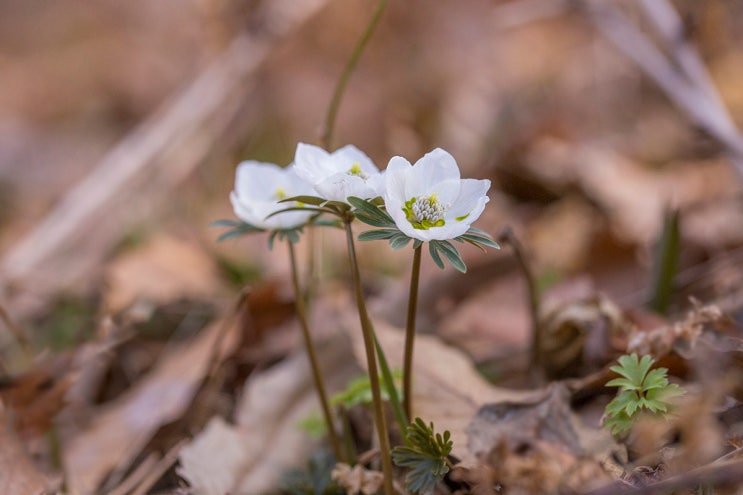 꿩의바람꽃은 개화 시기가 비교적 긴 편인 것 같다. 이하 화살표 풀꽃도감(이동혁 저), 오늘 무슨 꽃 보러 ...