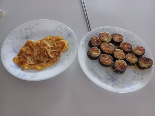 김밥2줄말아서 계란입혔어요. 김밥전이 먹고싶다고 해서 비가오는 어느날은 칼국수도 끓여서 먹기도하고 후...