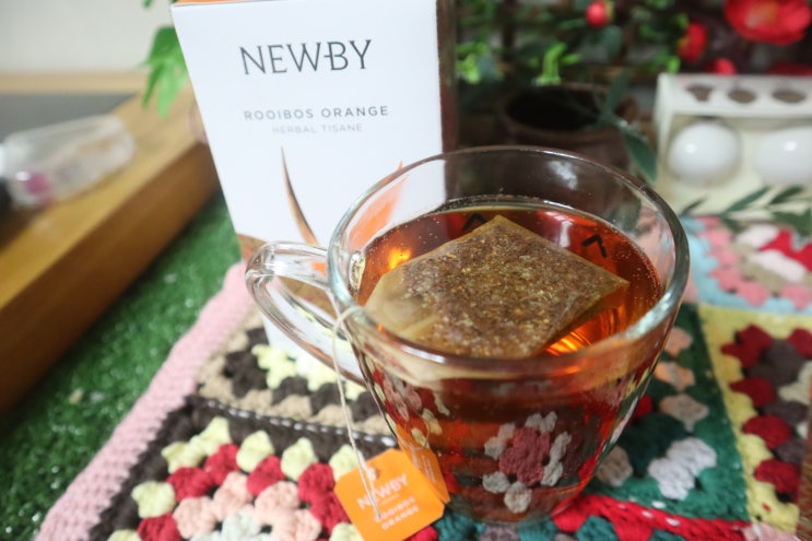 맛있는 허브티 추천 뉴비티 루이보스 오렌지 티백으로 즐겨요.