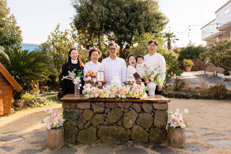 제주도에서 특별한 칠순여행, 야외 칠순상 차림 촬영 - 다미사진관