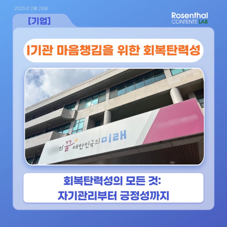 HR 콘텐츠 기업 로젠탈 콘텐츠랩 I 기관 6급 승진자교육, 마음 챙김을 통한 자기관리 및 회복탄력성 교...