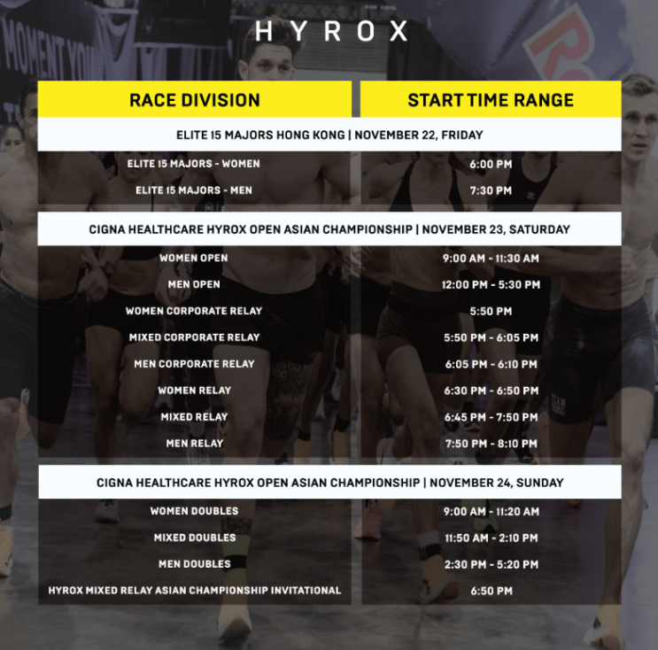 2024년 11월 개최되는 홍콩 하이록스 정보, 디비전별 시간표