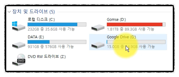 구글드라이브 윈도우 파일탐색기에 추가하여 동기화하는 방법