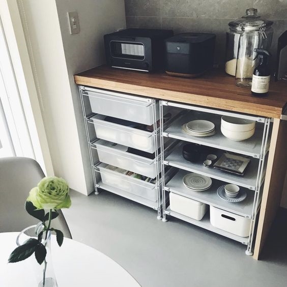 작지만 예쁨! 화이트 우드 홈카페 인테리어 수납장 용품 수납 정리 팁