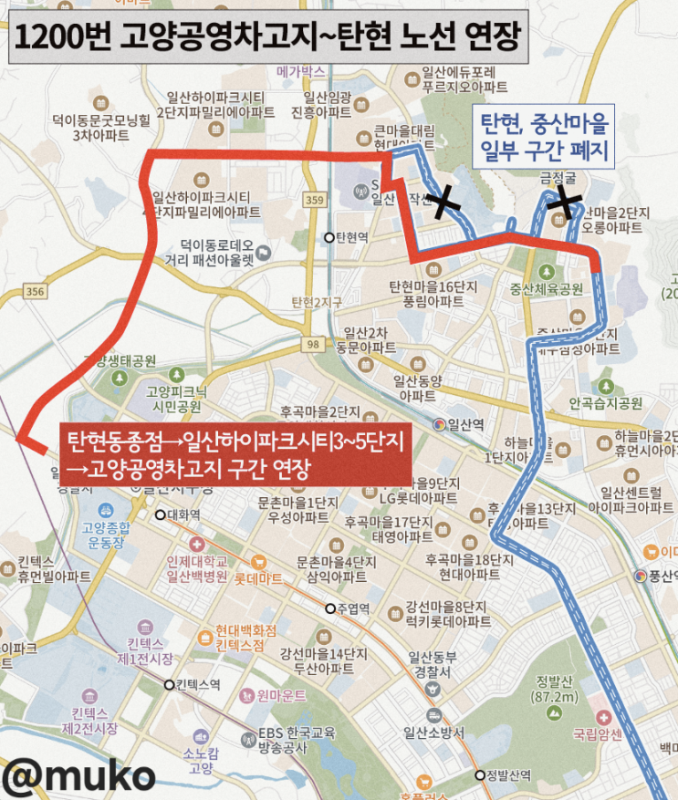 고양 1200번 버스 고양공영차고지~탄현 구간 연장(6/9)
