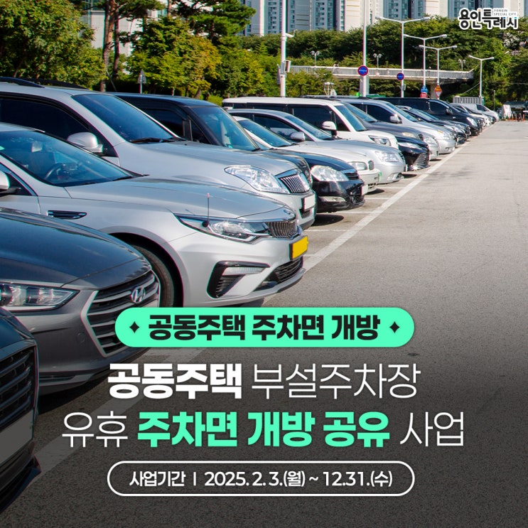 용인시가 보내드리는 '손바닥소식' 참고 하세요~ ① 공동주택 유휴 주차면 개방 공유사업 - 접수...