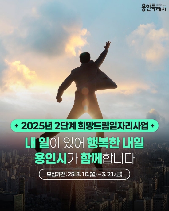 용인시가 드리는 손바닥 소식입니다. ① 2단계 희망드림일자리사업 참여자 모집 - 접수 : 3.10(월)~3.21(금...