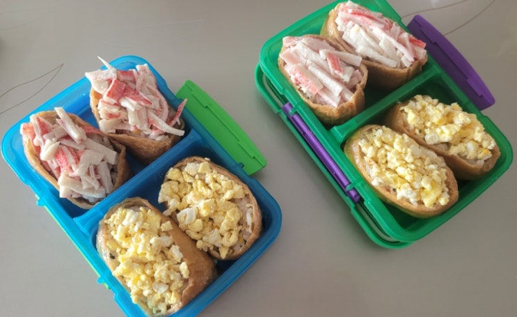 도시락 챙겨가는 날이 하루 있었는데요. 아이가 유부초밥을 주문해서 토핑올린 유부초밥 만들어봤어요. 토...