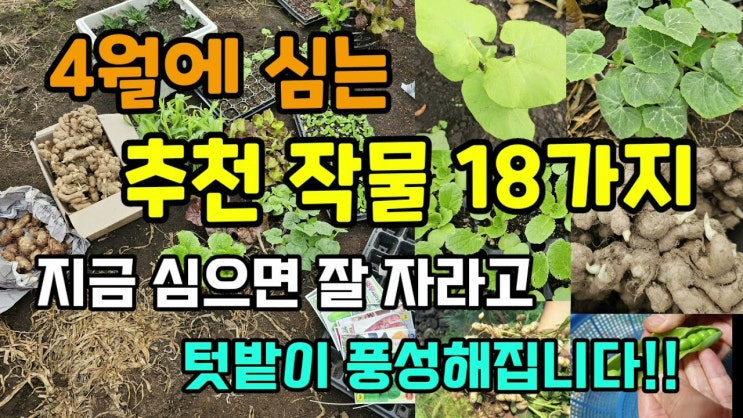 4월에 심는 추천 작물 18가지 지금부터 심어 풍성한 수확을 해보세요. https://youtu.be/mt5ZWXTXvO...