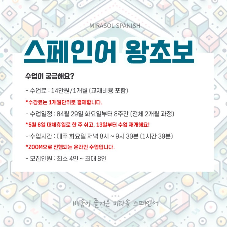 5월 미라솔 스페인어 신규수업 모집