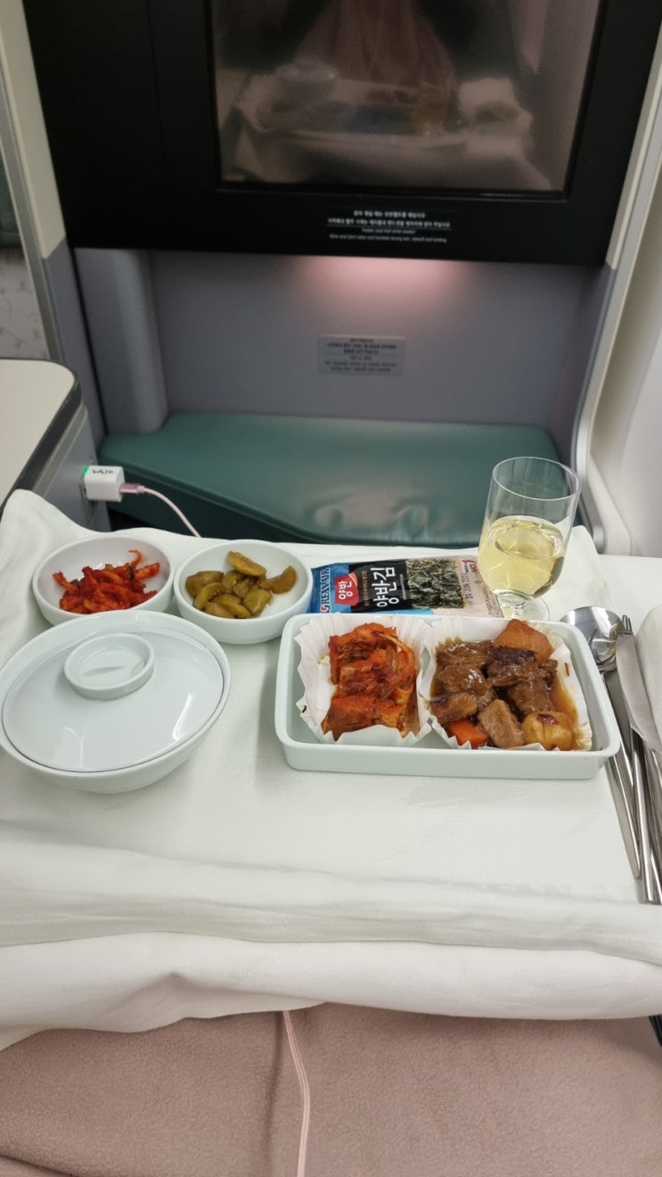 대한항공 프레스티지클래스 B747 인천-뉴욕 풀플랫, 라운지, 사전예약 식사(갈비찜, 크림파스타) 후기