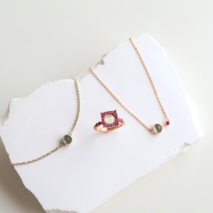 얼마 전 제작해드린, 고양이 루비의 루세떼 스톤을 담아 제작한 반지와 목걸이, 팔찌입니다. 고객님을 위한...