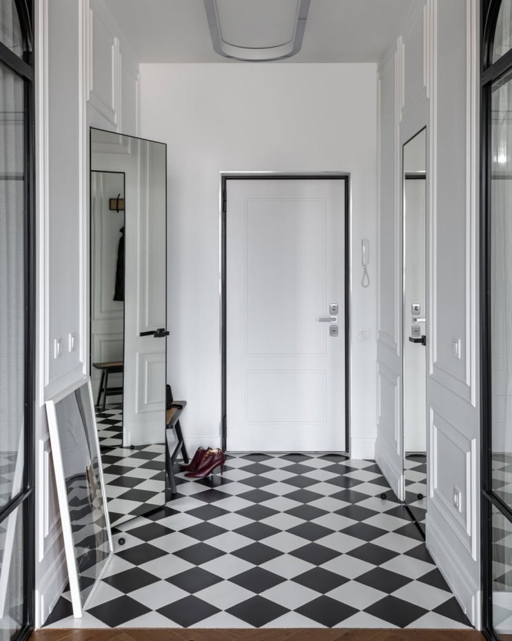 유럽풍 인테리어 아치형 유리 가벽과 유니크한 그림 액자 홈데코