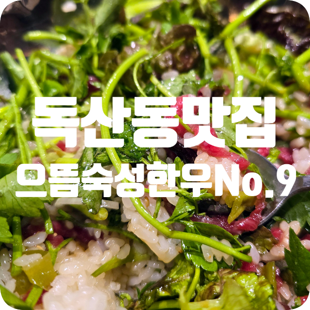 독산동맛집 으뜸숙성한우No.9 런치메뉴 오픈 한우1++ 육회비빔밥 & 된장찌개 13,000원 벌교 꼬막비빔...