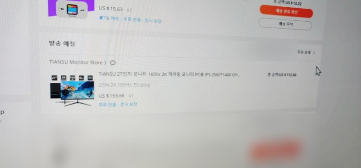 알리블프 tiansu 중국산 모니터구매하다 27인치 모니터 165hz 2K 112달러