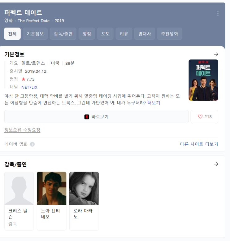 어제 넷플릭스 영화 퍼펙트데이트를 봤습니다. 주인공들이 전혀~ 모르는 사람들이라 볼까 말까 망설였습니...