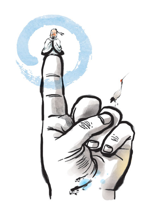높이 날아 멀리 보면 ‘하나’로 보이건만 이것저것 구분 지으니 서로 通하겠는가