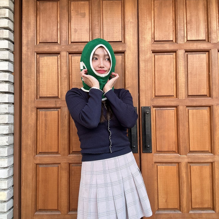 에스티유 핸드메이드 카라 가디건 블랙 그린&에스티유 덕 다운 쇼트 자켓 브릴리쉬 그린&울 알파카 발라클라바&우먼스 에어 포스 1 와일드 Fir#데일리룩#OOTD