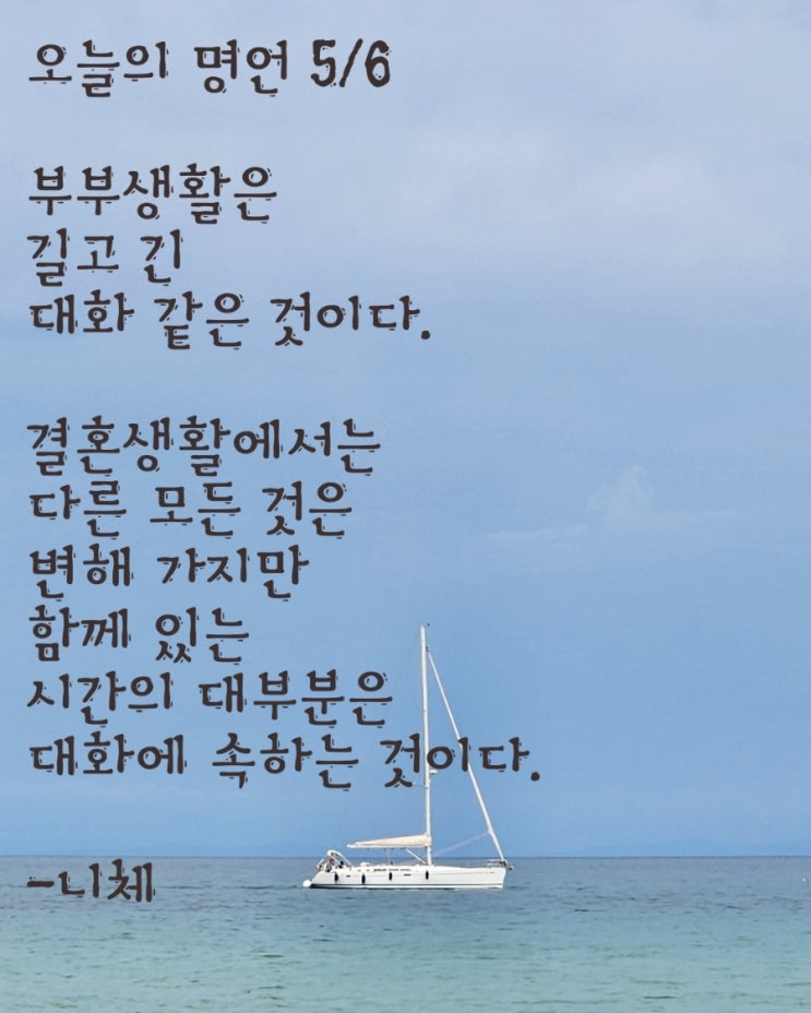 오늘의 명언 5/6 부부생활은 길고 긴 대화 같은 것이다. 결혼생활에서는 다른 모든 것은 변해 가지만 함께 ...
