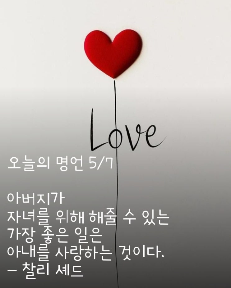 오늘의 명언 5/7 아버지가 자녀를 위해 해줄 수 있는 가장 좋은 일은 아내를 사랑하는 것이다. - 찰리 셰드...