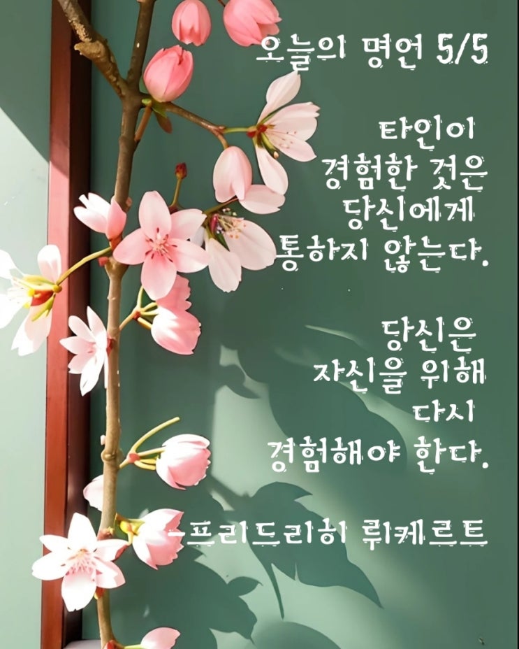 오늘의 명언 5/5 타인이 경험한 것은 당신에게 통하지 않는다. 당신은 자신을 위해 다시 경험해야 한다. -...