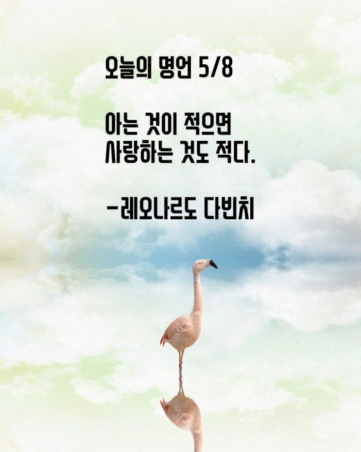 오늘의 명언 5/8 "아는 것이 적으면 사랑하는 것도 적다." -레오나르도 다빈치 #명언 #오늘의명...