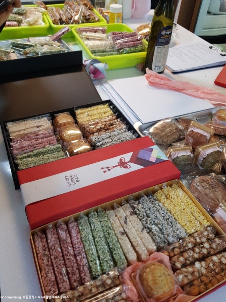 +++++ (수업후기) 12월30일 하남에서 오신 단골쌤~ 안쌤이랑 이쁜공주랑 모둠강정씨리즈와 명품월병으로 설선물셋트 수업하였습니다~1월5일 1석여석입니다